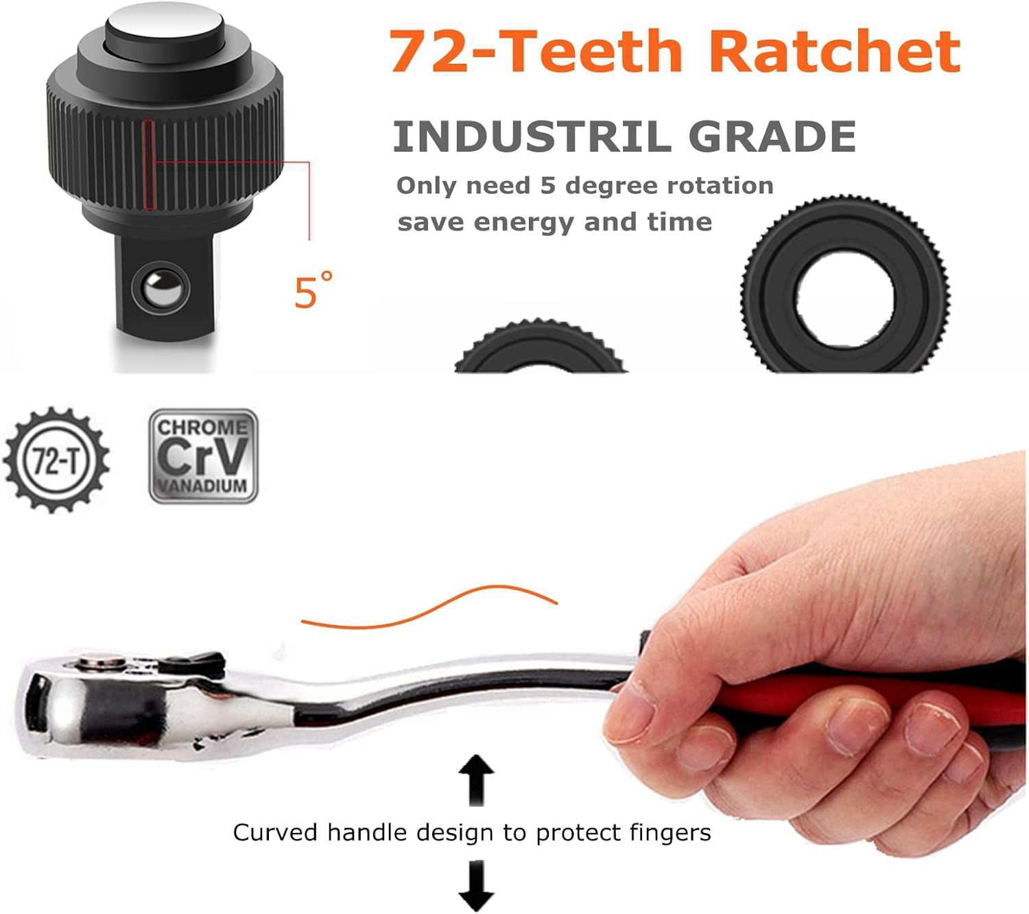 - User-Centric Design: From the ergonomic ratchet handle to the organized carrying case, every aspect of this set is designed with the user in mind for maximum efficiency and comfort.