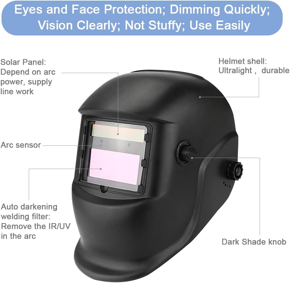 • Superior Eye Protection: Advanced auto-darkening lens technology shields your eyes from harmful UV/IR radiation and intense arc flash.