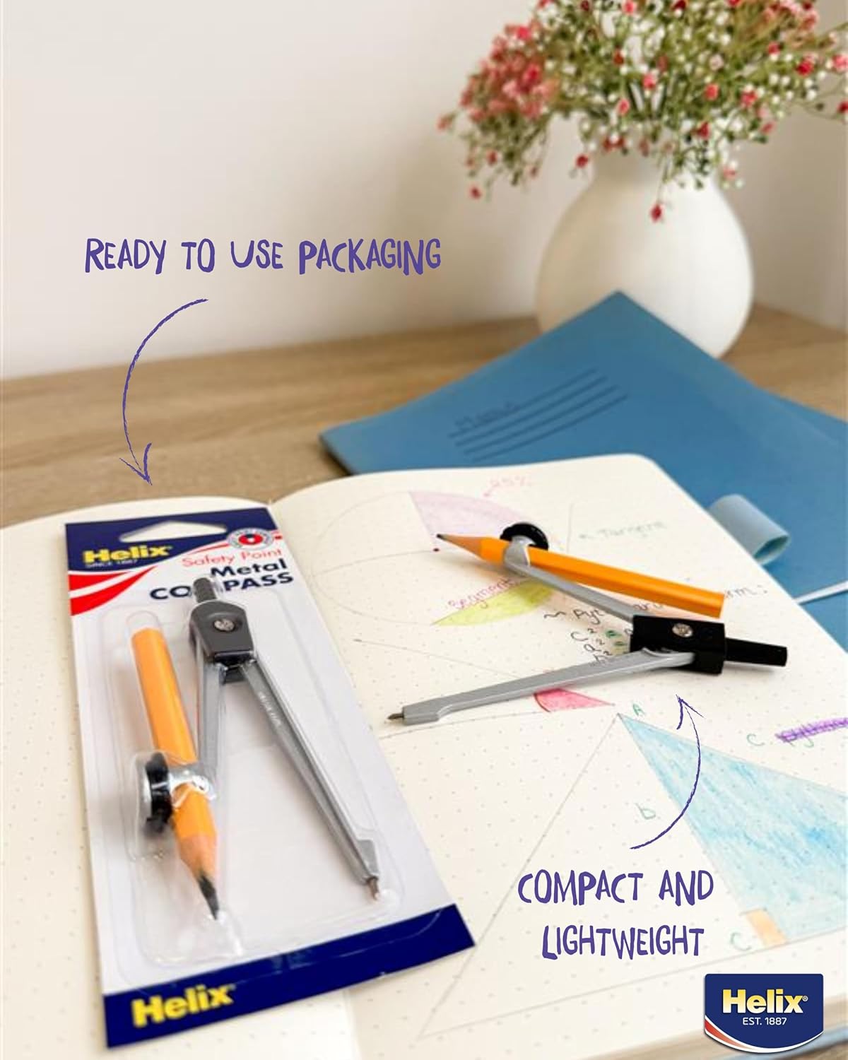 Helix G05070 Metal Compass and Pencil (Small/Medium Size Range) – Precision Drawing, Effortless Circles