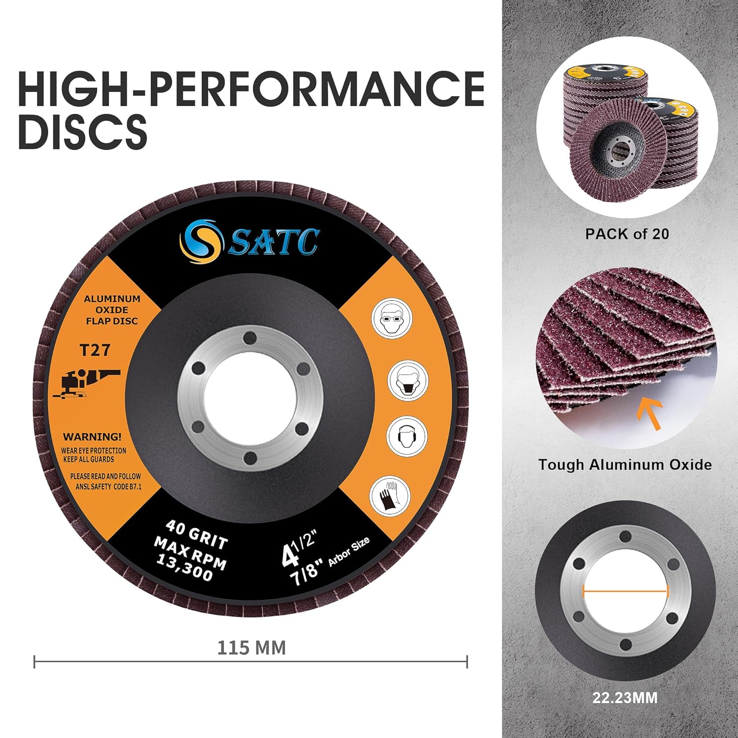 SATC 115mm Flap Discs, 20-Pack Assorted Grit (40-120) for Metal & Wood Grinding