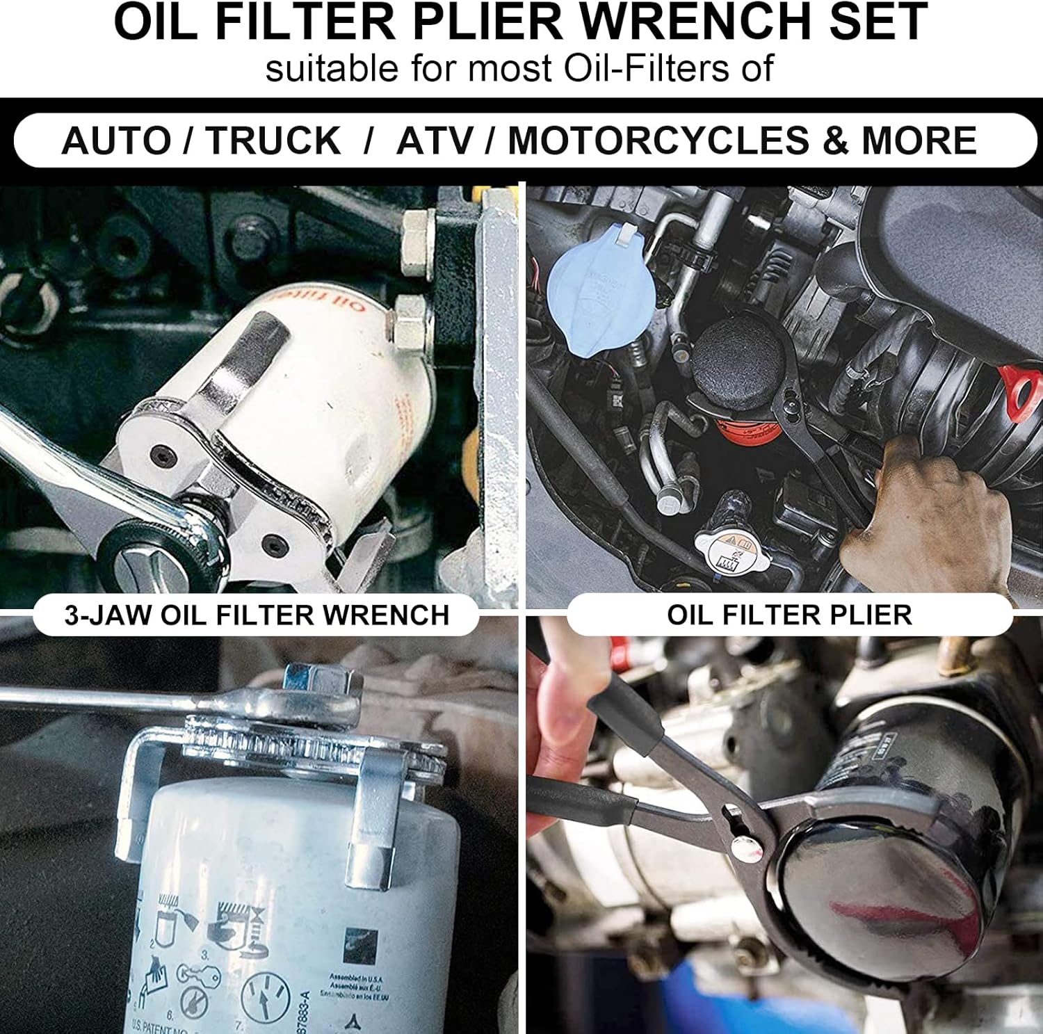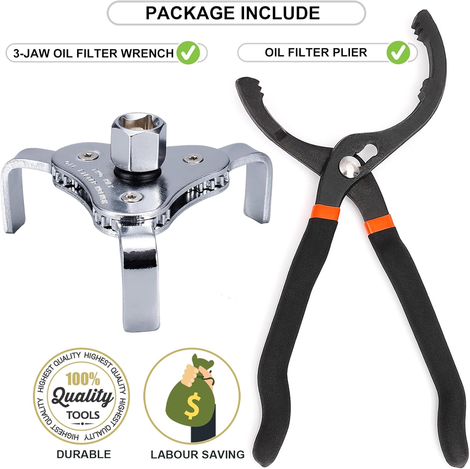 • Set Includes: 1 x Pliers-Style Oil Filter Wrench, 1 x Wrench-Style Oil Filter Wrench